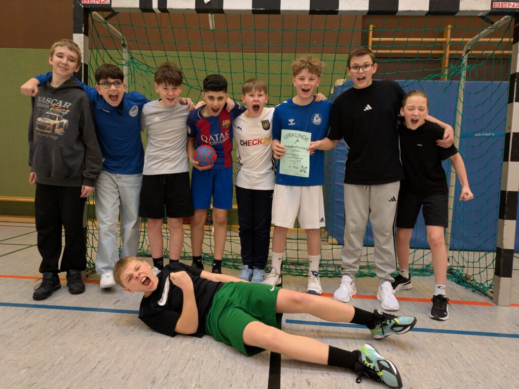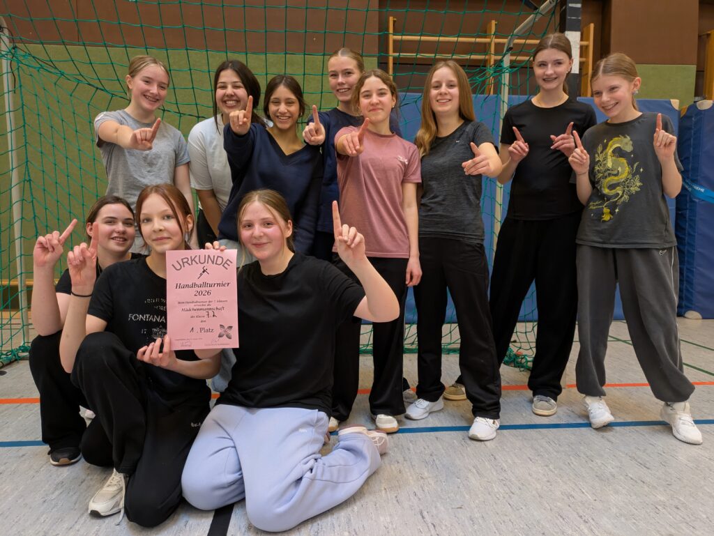 Das Handballturnier des 7. Jahrgangs war von beeindruckender Fairness sowie großem Mannschaftsgeist und Einsatz aller Teams geprägt. Das Schiedsrichterteam um Lina, Tjark und Herrn Fiefstück leitete die Spiele gewohnt souverän und mit viel Fingerspitzengefühl.