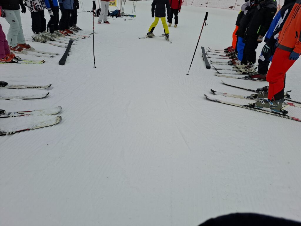 Sonntag war unser erster Skikurs. Wir haben schnell gelernt. Wir waren auf der Anfängerpiste und haben die Fahrtechniken gelernt. An diesem Tag lernten wir Pizza / \ und Pommes ||. Bei Pizza muss man die Skier wie eine Pizza Stück halten und bei Pommes hält man die Skier parallel nebeneinander. Pizza benutzt man zum Bremsen und Pommes zum Gleiten oder schneller werden. Wir durften auch mit dem Förderband bis hoch oben auf die Piste. Am Abend gab es eine Krone des Tages für besondere Leistung, nicht nur sportliche sondern auch für die Gemeinschaft. Danach haben wir noch einen Spieleabend gemeinsam gemacht.